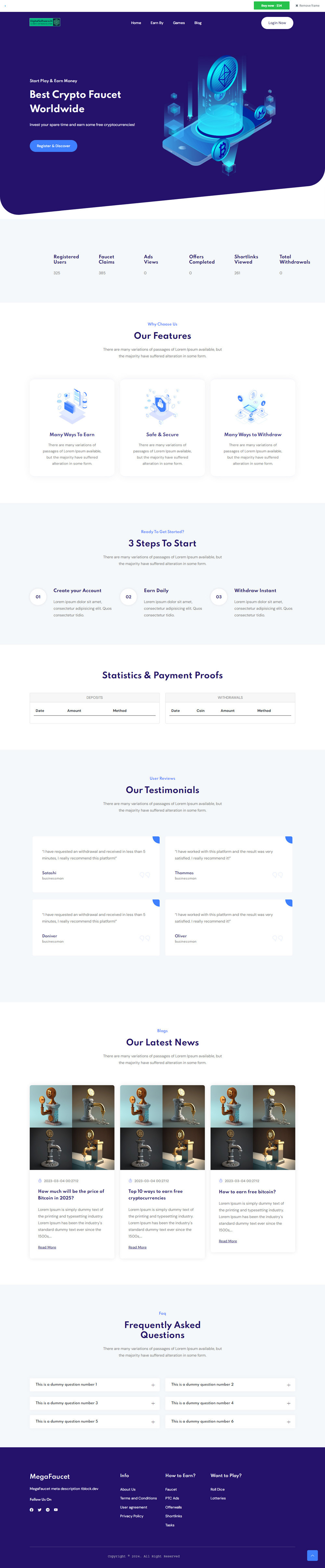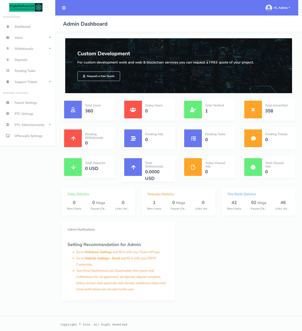 One of the main features of this script is the faucet system, which enables users to claim a small amount of cryptocurrency for free. This is a great way for new users to get started with cryptocurrencies and learn more about them. The paid-to-click system is another feature that rewards users for viewing ads. Users can earn coins by clicking on ads displayed on the website.